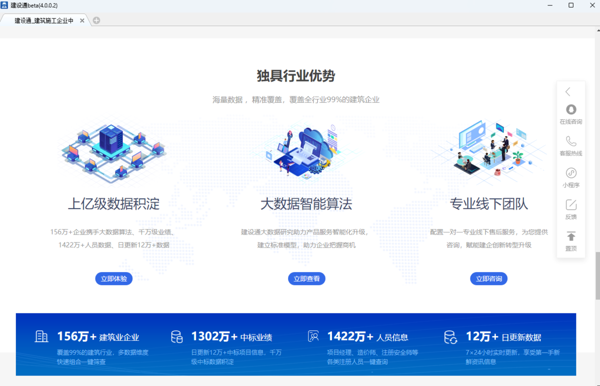 查资质:可查询招投标经营所需的企业资质,如总承包、专业承包、勘察设计资质等各类资质。