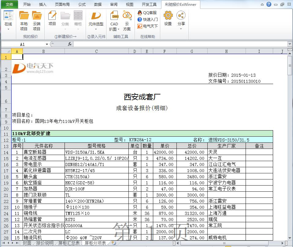 ExWinner成套报价软件是一款专用于电气类设备报价的软件,ExWinner成套报价软件之中用户可以直接打开CAD模型图,在一边打开各种设备的报价图的表格之外,还可以打开设备安装的CAD图纸,避免需要打开多个图纸的情况。