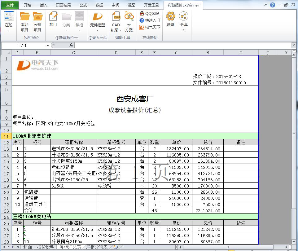 ExWinner成套报价软件之中有着非常全面的报价功能,该软件之中有着非常多的方案可供套用,并且该软件还有着配用的柜型模板、母排计算器等等功能,帮助用户在做报价单的时候可以更方便且专业。