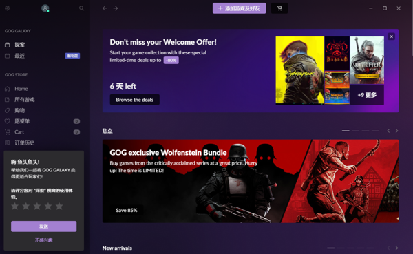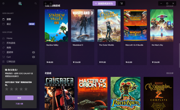 GOG GALAXY电脑版是由CD Projekt旗下开发的一款在线数字游戏交易平台,GOG GALAXY客户端平台内置玩家社区,玩家可以参与讨论、查看评测、分享经验和技巧等,通过用户评价和反馈,玩家能更清楚地了解游戏的优缺点,帮助做出购买决策。