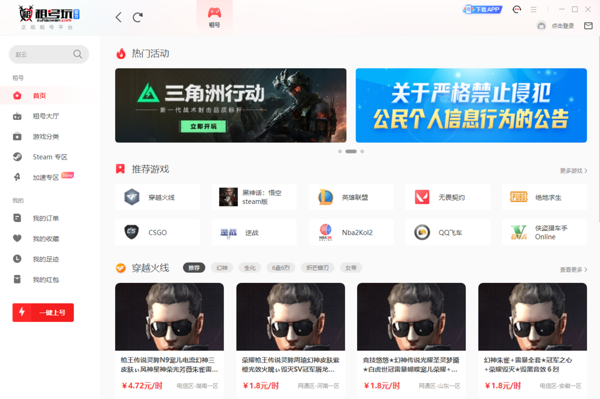 租号玩app免费是一款面向游戏玩家的账号租赁平台,软件为用户提供了高质量的游戏账号租赁服务,租号玩电脑版允许用户租用其他玩家的高等级、高装备的游戏账号,可以在这里租赁各种热门游戏账号,提供了不同价位的账号选择。