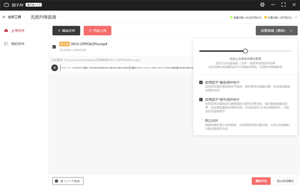 团子AI软件可以帮助用户在不损失音质的情况下,进行音频的升调或降调处理,轻松提升音频编辑的灵活性和创意空间。