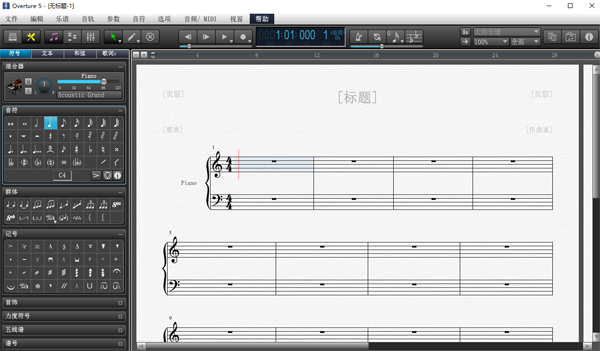 Overture中文版是一款专业的音乐创作和编排软件,这里提供了丰富的功能和高质量的乐谱编辑能力,Overture电脑版支持精确的乐谱编辑功能,用户可以通过拖放、键盘输入或MIDI输入进行创建和编辑乐谱,支持多轨编辑,能够在复杂的乐器中进行编排。
