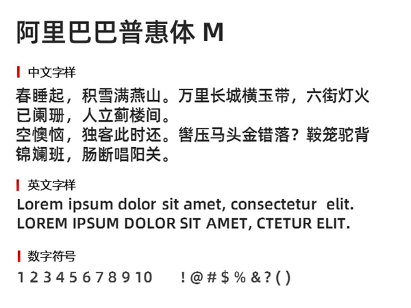 阿里巴巴普惠体设计简洁大方,能够在各种文档排版中更加的自然,可以让个人设计师、自由创作者制作各种各样的图形设计、海报、应用设计等。