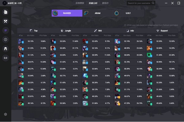 OPGG软件中可以查看自己和其他玩家的排位信息,提供详细的战斗表现分析,帮助大家分析游戏中的优势和不足。