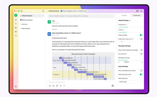 智能对话与丰富功能:该客户端内置超过 300 个预配置 AI 助手,涵盖工作、学习、生活等各类场景,同时允许用户根据自身需求自定义创建专属助手。其独特的多模型同时对话功能,可帮助用户获取多维度观点。它支持文本、图片、Office、PDF 等多种格式文件的处理,还具备 WebDAV 文件管理与数据备份功能,便于实现云端同步。此外,它能将 Mermaid 图表可视化,使复杂数据直观呈现;代码高亮显示功能为编程工作带来便利;话题管理系统则让对话逻辑更加清晰,条理分明。