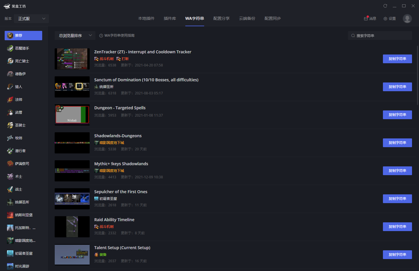 收录众多由大佬精心配置的 WeakAuras 字符串,适用于不同职业、场景,供玩家挑选,优化游戏提示效果。