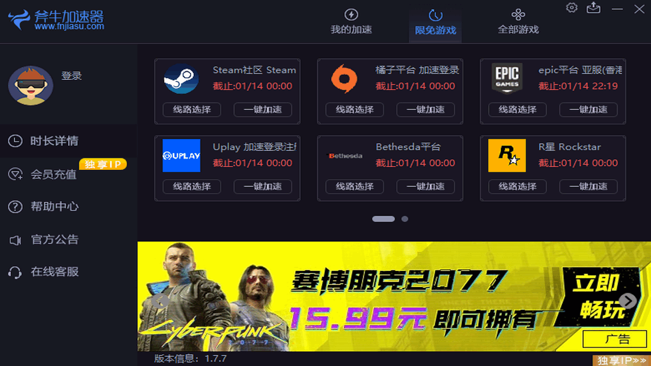 斧牛加速器整体以QoS技术保障游戏的网络不会受到干扰,在软件之中有着多个游戏可以提供专用加速渠道,加速过的游戏不会卡顿,不会丢包,非常稳定。