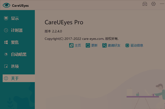 CareUEyes是一款好用的护眼软件,CareUEyes免费版之中用户可以在桌面安装该软件,用来改变屏幕发出的光的颜色,该软件可以调节成各种柔和的光芒,让用户在黑暗之中使用电脑不会感觉非常刺眼,该软件适合经常使用电脑的用户,让长时间看电脑不会让眼睛劳累。