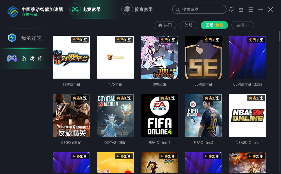 中国移动智能加速器是中国移动开发的一款网络加速器软件,中国移动智能加速器之中主要加速的是网站和游戏,该加速器包含国内外2000+款游戏,支持各类平台加速,让用户在家也可以和全球用户联机。