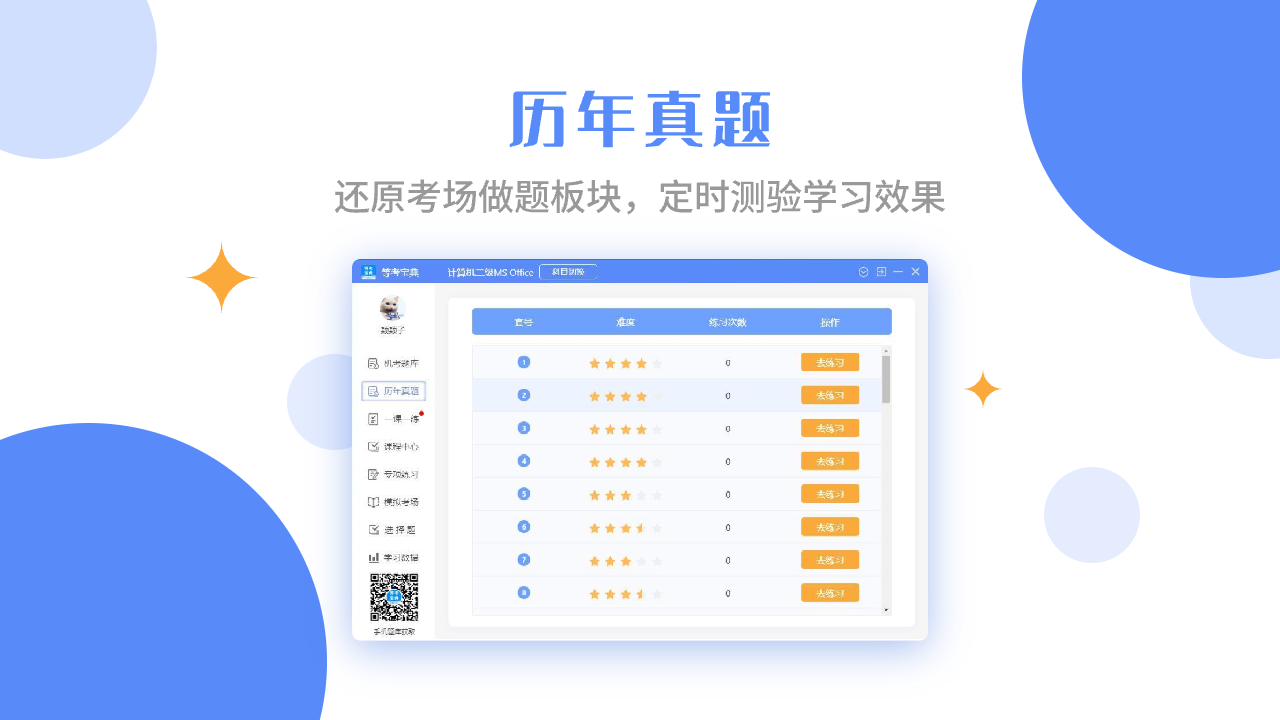 历年真题深度剖析:汇集全国计算机等级考试历年真题,呈现考试发展与命题规律,助考生熟悉题型、难度及考点,针对性复习。