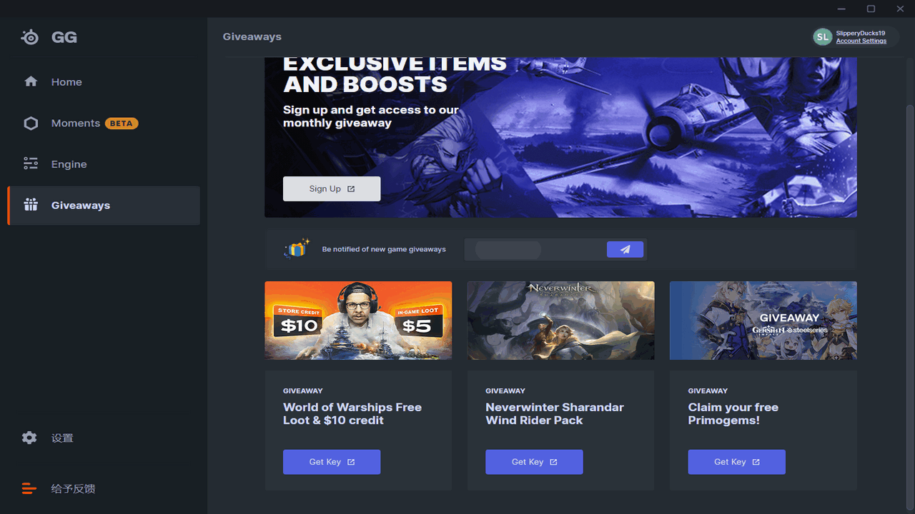 赛睿GG平台是SteelSeries旗下的所有设备驱动更新下载平台,赛睿GG平台中文版之中用户可以直接在该软件之中手动更新自己的设备连接的SteelSeries设备,在更新驱动之后,这些产品将会有着更好的使用体验,面对最新的操作系统也会有着不错的改变。