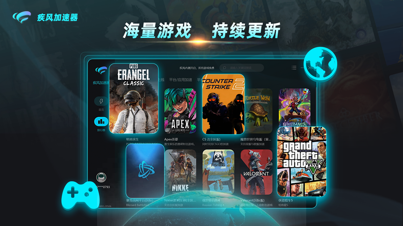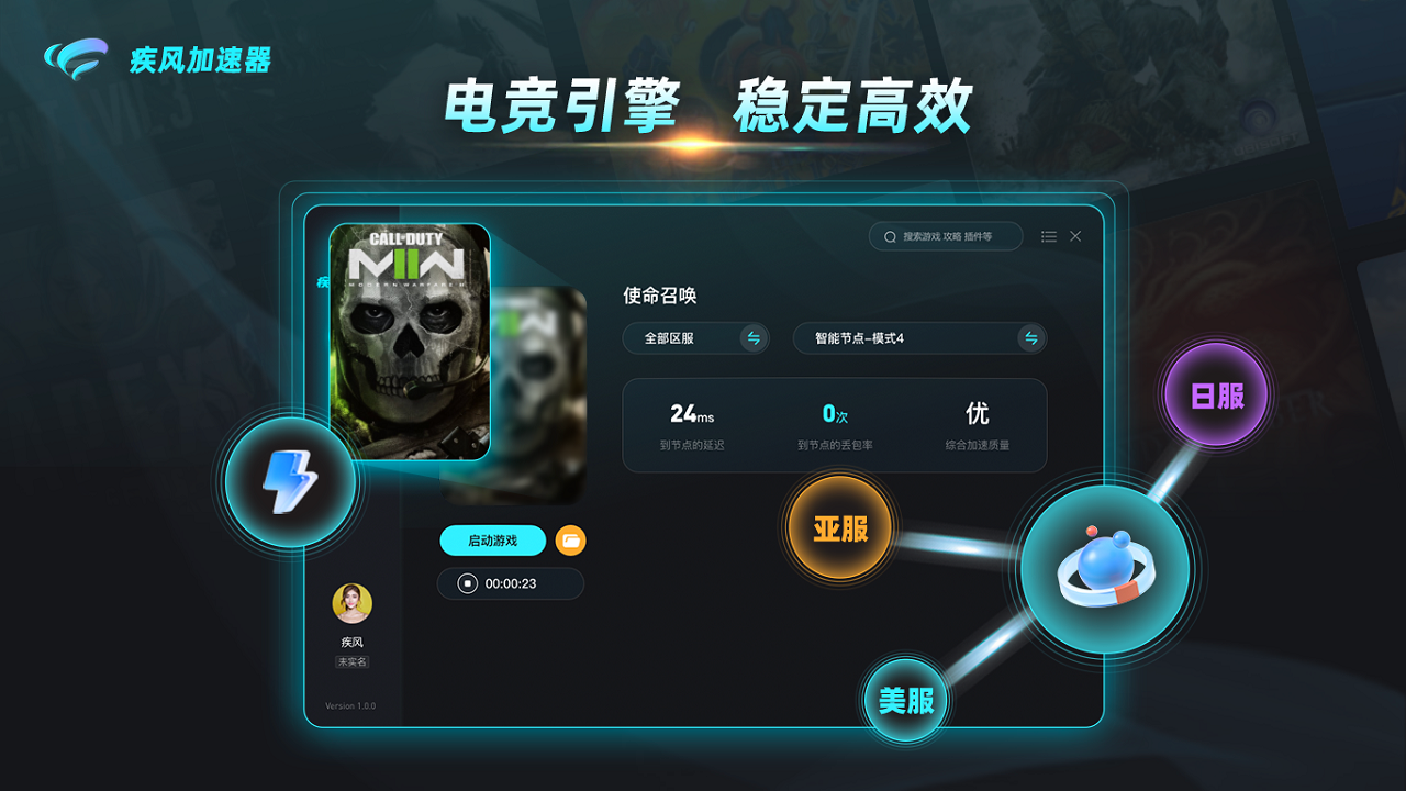 电竞级加速体验:以电竞标准打造,提供超低延迟、高带宽服务,助力玩家精准操作,提升竞技表现。