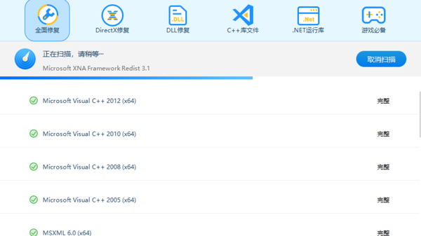 运行库全能修复管家凭借其强劲的检测能力,对系统中的各类运行库展开全面细致的扫描。