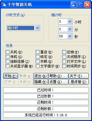 千宇智能关机是一款好用的智能关机软件,千宇智能关机免费版之中用户可以在该软件之中设置各种时间来判定是否需要停止电脑运行,该软件非常适合电脑在自主下载东西的时候使用,帮助用户可以快速进行自主关机。