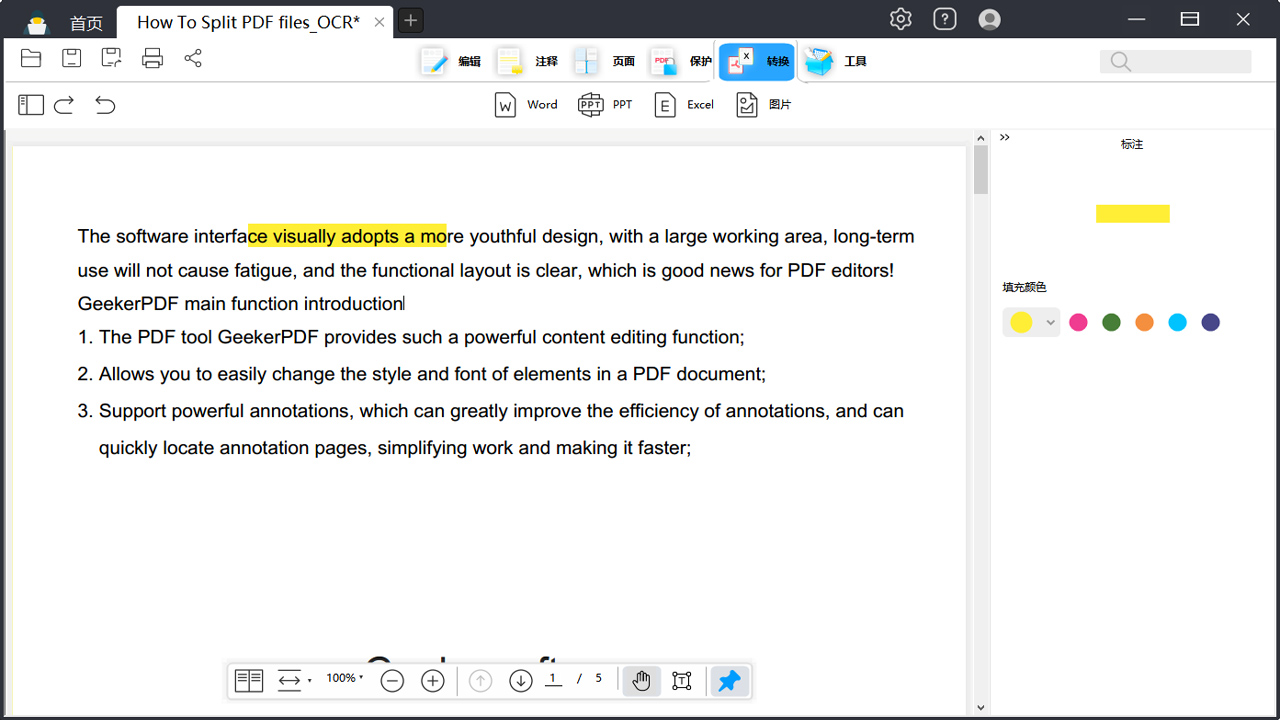 奇客PDF之中用户可以直接进行编辑修改,也可以直接使用转换功能将PDF文件改为office文件格式,帮助用户可以直接在文档之中进行修改,修改之后的文件将会完全保存为原始样式,不会改变。
