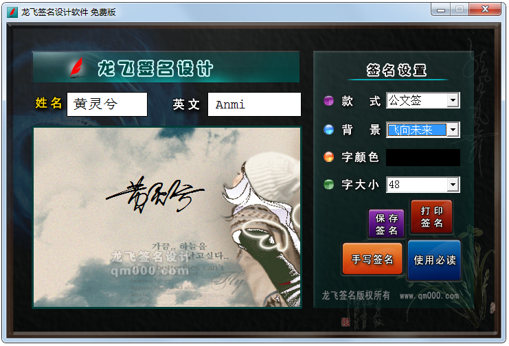 龙飞签名设计有着非常不错的设计规划,在这里设计好的名称或者字体,都是相当的拟真手写了,用户如果有时间练习的话,可以使用该软件来进行手写设计以及练习,让用户在现实之中签名也能龙飞凤舞。