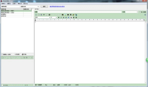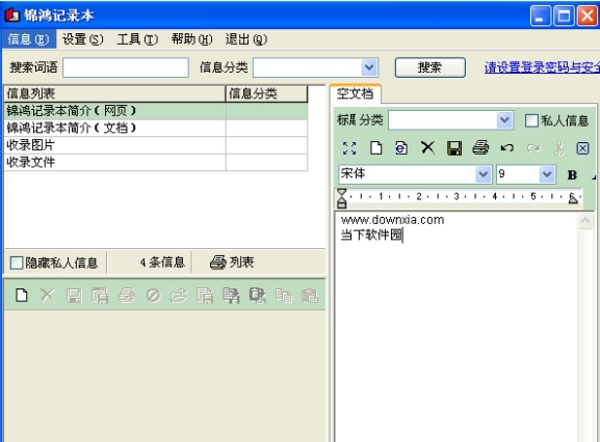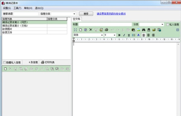 锦鸿记录本电脑版是一款简洁高效的记录软件,锦鸿记录本绿色版能够帮助用户轻松管理日常工作,学习笔记等信息,轻松编辑和管理各种记录,不管是工作日志、待办事项还是个人笔记,软件都可以快速整理,方便随时查看。