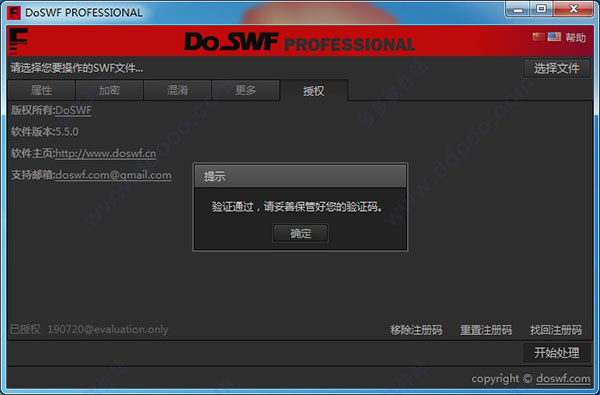 DoSWF之中用户可以直接在该软件之中进行数据加密,在加密的时候会对反编译软件进行反制,只要发现了反编译软件在尝试破解的时候,该文件将会迅速弹出,让该软件无法继续破解,再次破解也无法使用相同的编码。