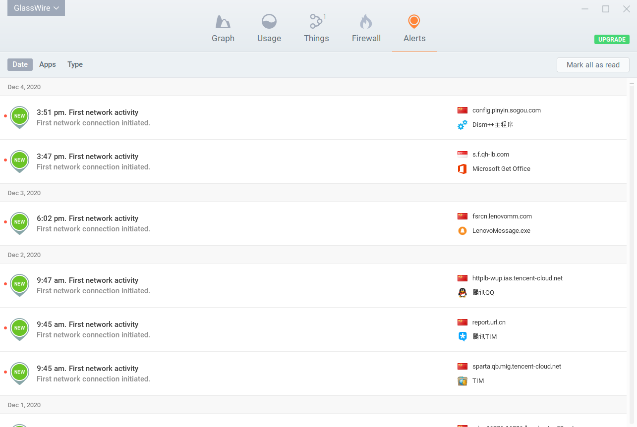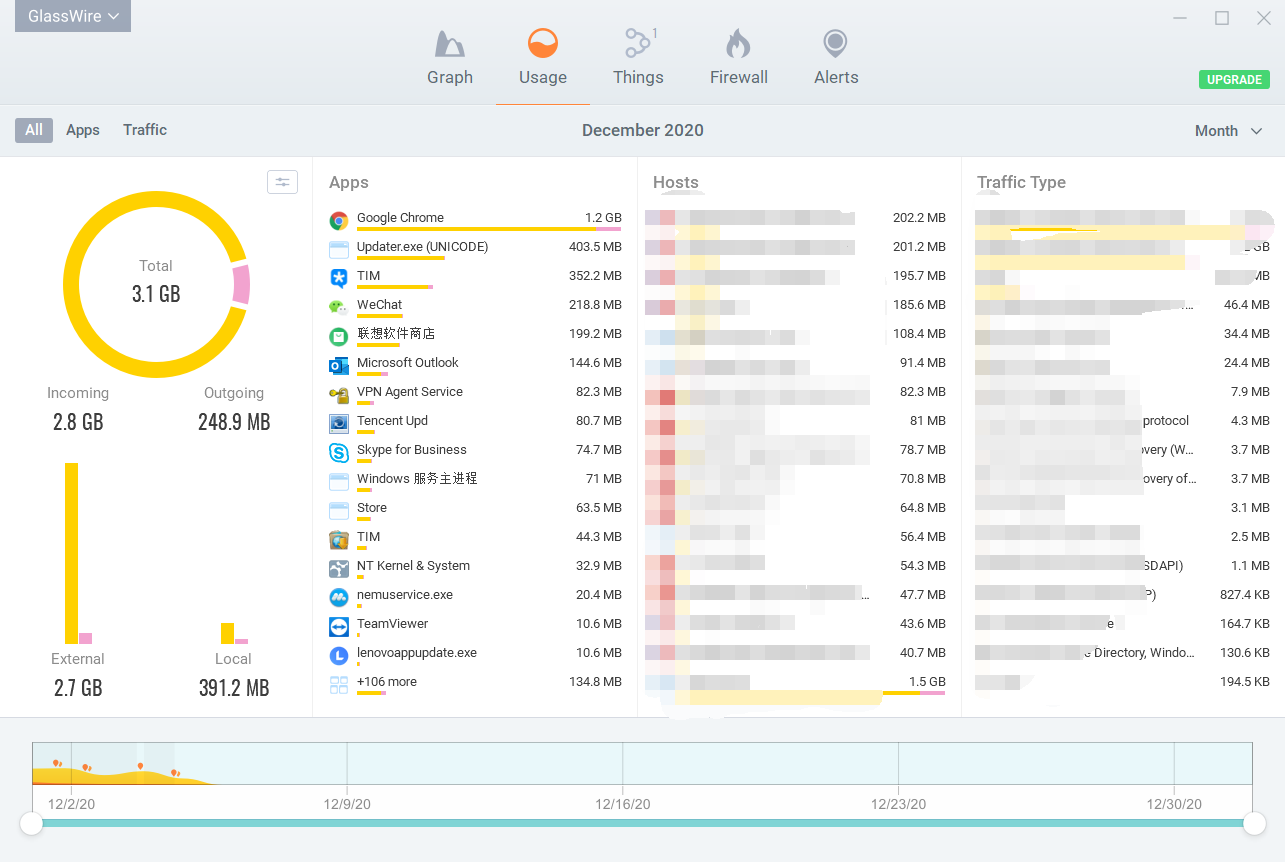 GlassWire之中用户可以快速来确定好流量的使用情况,在软件之中有着图标来显示流量的使用,还有独特的网速显示模式,让用户可以快速看到网速波动情况,以及网络流量的使用情况。