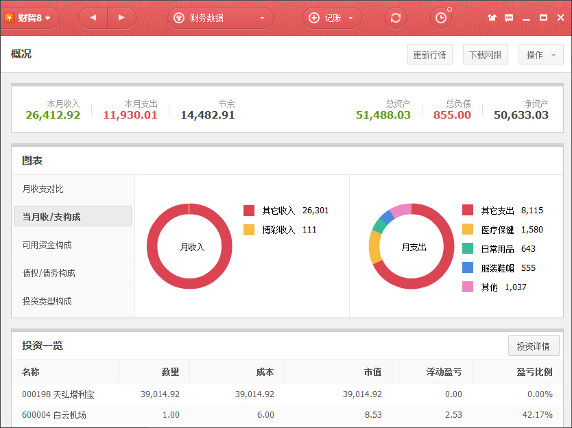日常收支管理可统计分析,生成报表展示消费结构。投资管理依算法提供组合建议,优化投资配置。资产和债务管理整合信息算净资产,分析结构。财务分析多维度挖掘数据,评估财务健康。联网更新银行账户数据,确保信息及时准确 。