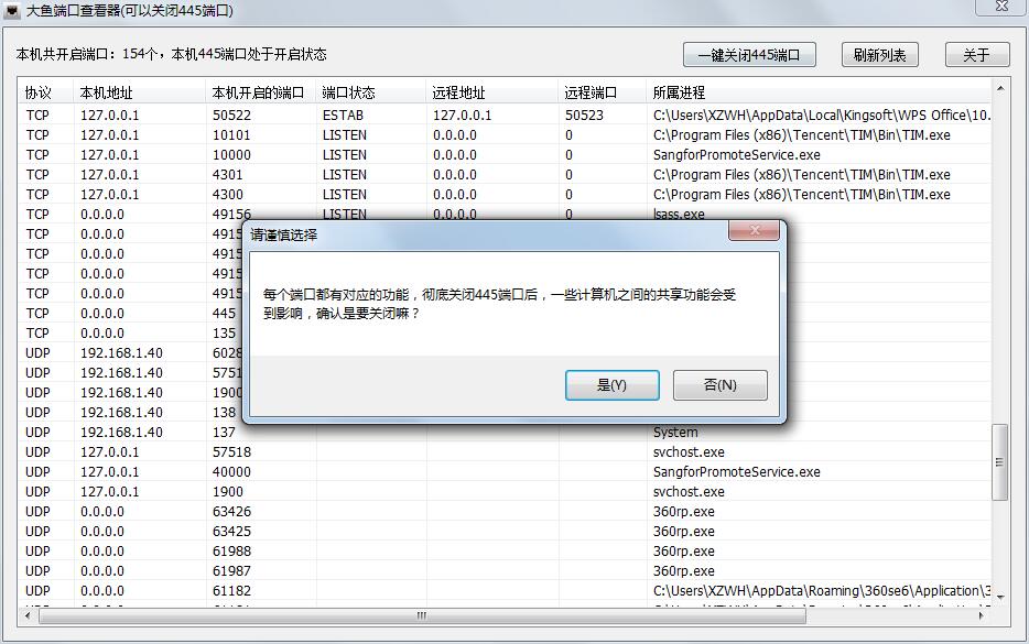 大鱼端口查看器是一款非常强大的网络辅助软件,大鱼端口查看器最新版之中用户可以直接使用该软件来分析用户的网络端口,在这里帮助用户关闭Windows的445端口,关闭该端口后,一些病毒软件将会无法攻击设备的系统。