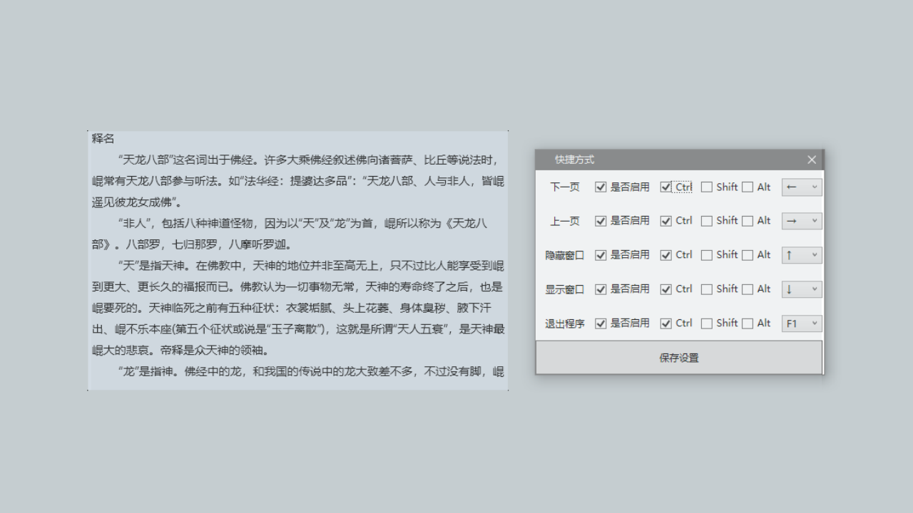 上班看小说阅读器是一款非常好用的看小说的阅读器软甲,上班看小说阅读器最新版之中用户可以使用该软件进行小说阅读,独有的桌面隐藏功能,以及软件的背景隐藏功能,可以帮助用户在阅读的时候体验独特自然的感觉。