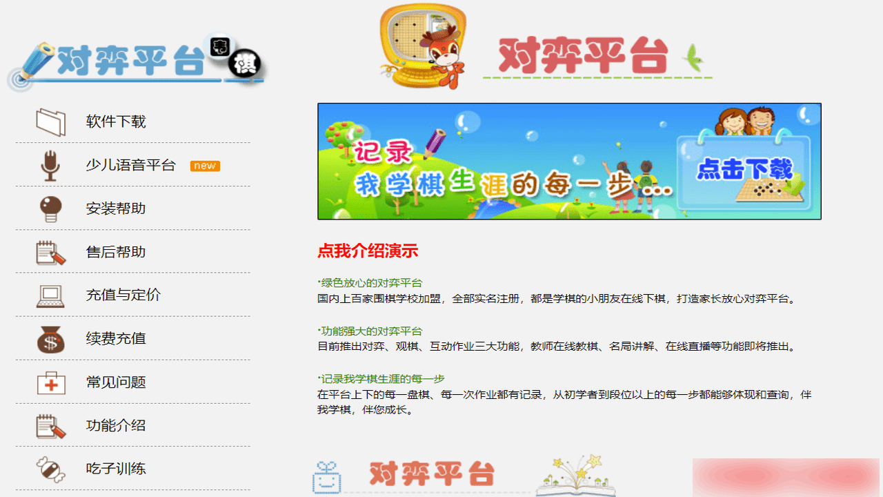 新博少儿对弈平台是一款非常好用的少儿对弈软件,新博少儿对弈平台之中用户都是初学者的孩子们,在这里有不少的基础学习内容,帮助孩子们在对弈之中逐步成长,并且一步一步变得更加强大,从而成为一个成熟的围棋人。
