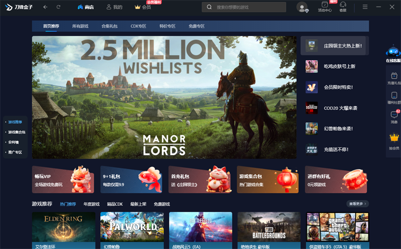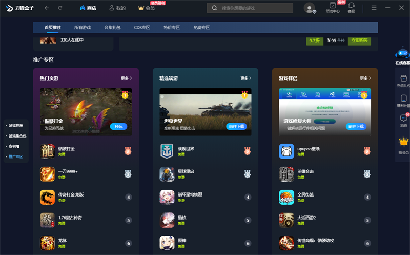 与游戏发行商合作,提供最新、最热、最好玩游戏。定期推出史低特价活动,会员 VIP 可免费畅玩 3A 大作,玩家能以优惠价格充实游戏库。