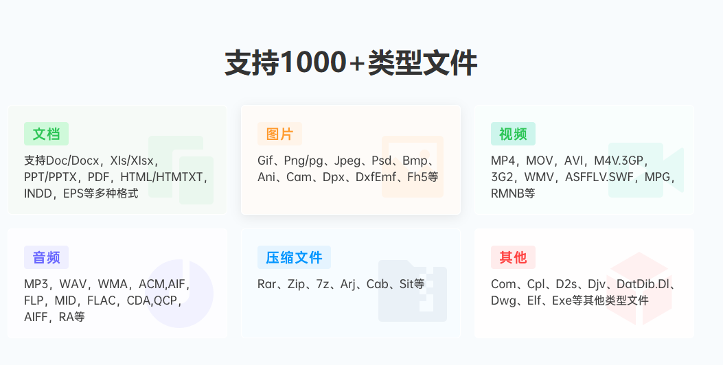 支持 1000 + 文件类型的数据恢复,全面涵盖文档、视频、音频等多类型内容,无论是工作文件、学习资料,还是影音素材,丢失后均有机会找回。