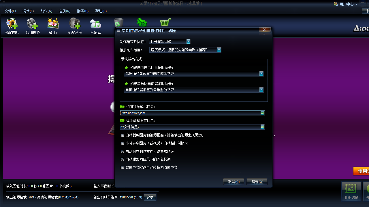 艾奇ktv电子相册制作之中用户导入了音乐和照片文件之后就可以直接进行制作,在该软件之中有着非常的多的模板可以使用,在使用的时候几乎完全免费,并且还有字幕可以生成,非常方便。