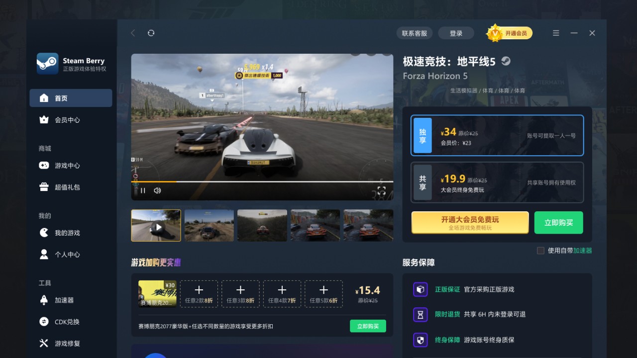 steamberry是一款非常有着众多steam游戏的平台软件,steamberry电脑版之中用户可以直接在这里购买各种steam游戏,优惠力度会更大,并且该软件还可以直接交易steam账号,并且账号之中的游戏可以直接畅玩。