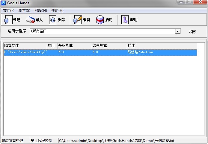 上帝之手之中用户可以根据自己的需求来编辑鼠标和键盘等级的脚本,在模拟好鼠标和键盘动作的脚本后,只要开启了该脚本设备的鼠标以及键盘将会动起来,并且不会停下来。