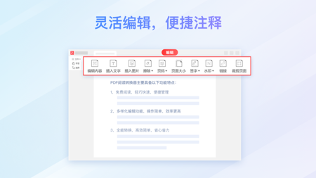 软件安装包精简,不占系统资源,集阅读、编辑、转换功能于一体,避免多软件切换,提升处理效率。