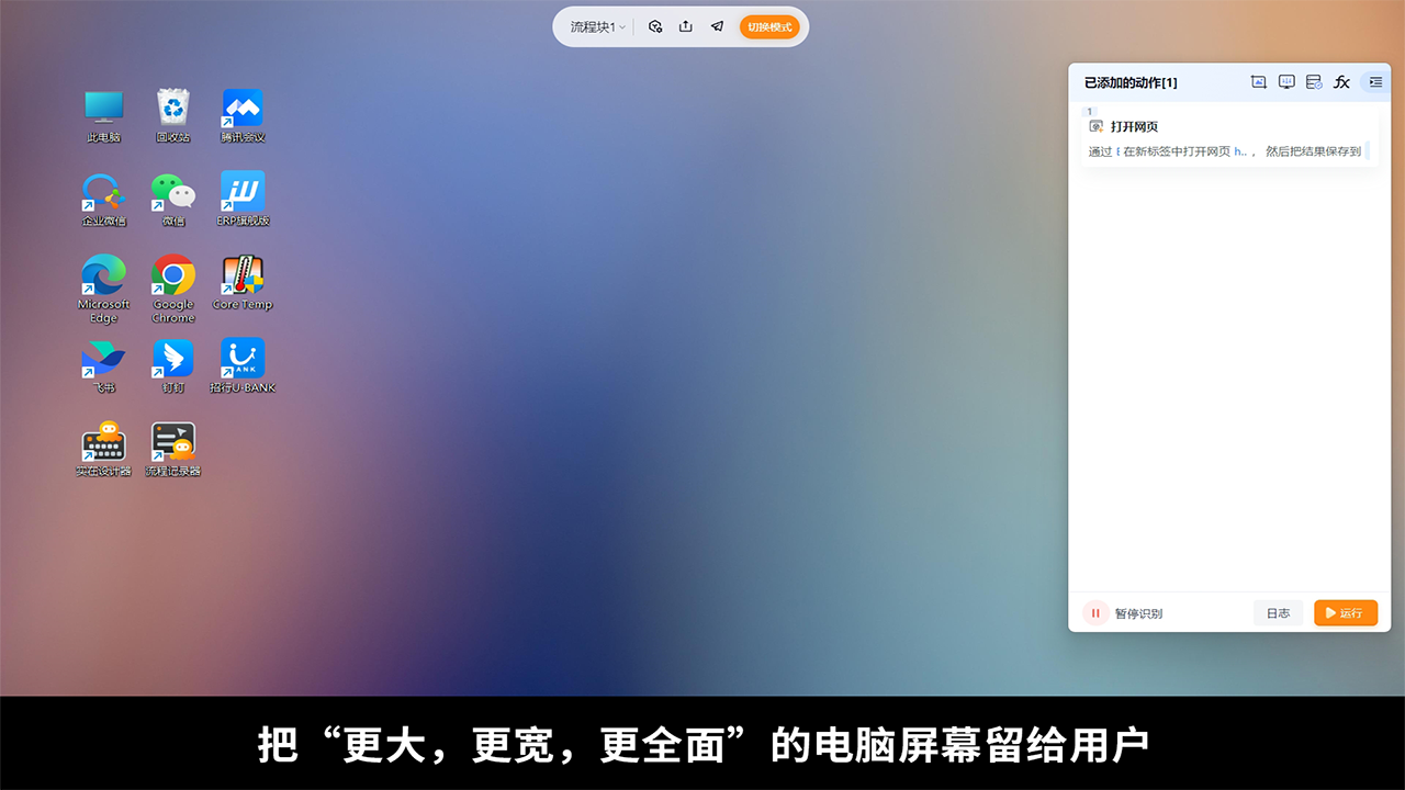 可视化界面支持点选、拖拽操作,无需编程,轻松设定软件点击、数据获取等自动化任务。