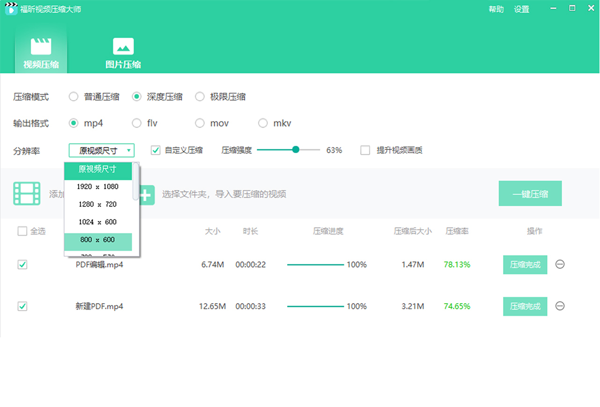福昕视频压缩软件提供了高效的处理速度同时确保视频质量尽量不受损失,可以根据不同需求选择视频质量与压缩程度之间的平衡,直观的用户界面,操作简便。