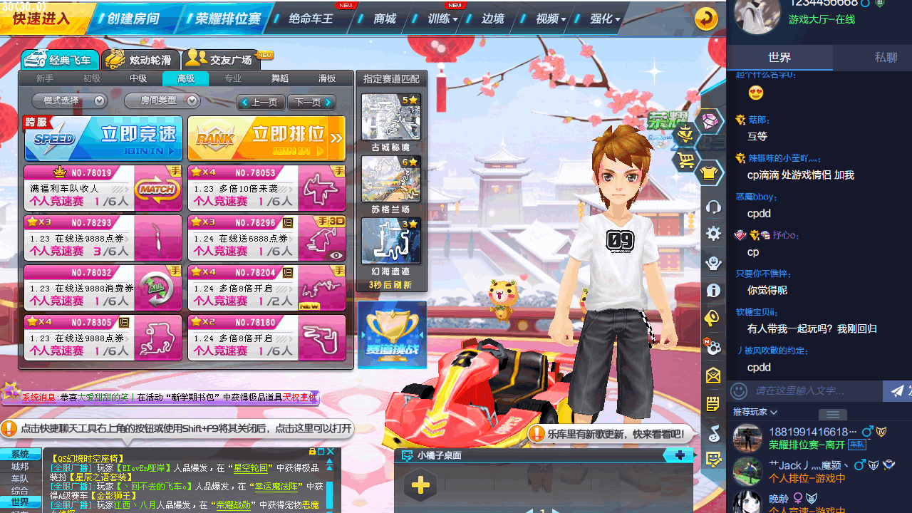 QQ飞车端游有着非常不错的操作模式,在该游戏之中玩家可以启用各种道具来进行加速,并且以自己的熟练度,掌握每一个图可以加速的超过的点来跑到第一名。