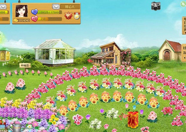 通过鼠标拖动鲜花,能够精心设计布局,摆出个性文字图案,如用鲜花拼出 “生日快乐” 送给游戏中的好友,或是打造专属的浪漫爱心造型,充分展现玩家的创意与审美。