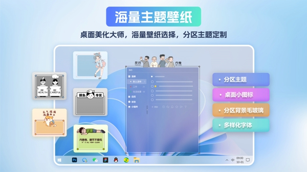 灵活的分区管理:可在桌面创建多个图标分区(栅栏),每个分区的大小、位置可随意调整,能放置任意数量的图标,图标分区的标题也能改名,双击标题栏可收缩和展开分区内容。