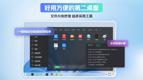 自动整理与智能分类:首次安装后会智能自动地帮用户归类整理桌面图标,也可根据文件类型、名称、创建时间等制定自定义规则,实现自动化整理。