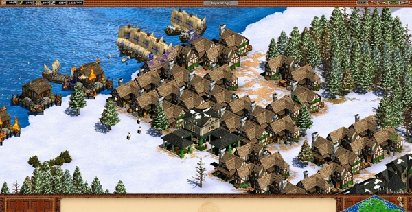 玩家需要控制村民收集食物、木材、黄金和石头四种资源,用于建造建筑、训练军事单位和研究科技。