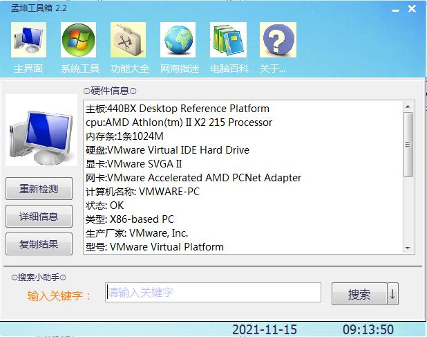 孟坤工具箱的操作非常简单,有需要的功能直接进行搜索使用,该软件本身是不需要进行安装处理的,直接打开就可以使用相关功能,并且软件本身没有广告收费等等内容。