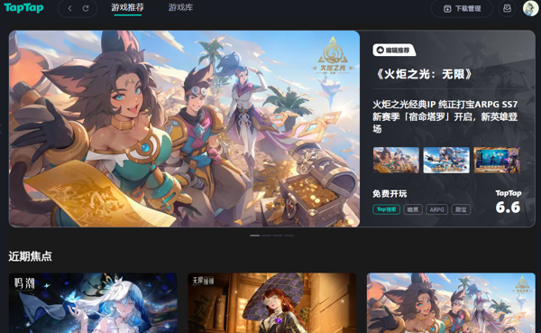 TapTap电脑版是一款专为电脑用户提供的移动游戏和应用平台,TapTap最新2025客户端提供了大量的正版手游资源,用户可以轻松浏览、下载和安装各种热门游戏,平台涵盖了多种类型,支持推荐相似或新推出的游戏,帮助玩家发现新的兴趣点,并随时保持对最新热门游戏的了解。