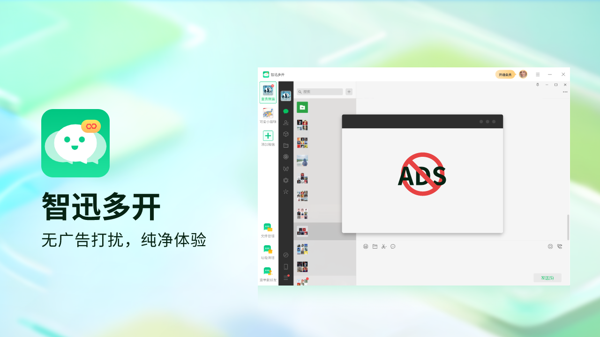 智迅多开电脑版是一款功能强大的应用程序多开工具,智迅多开2025最新版支持多个账号同时运行,数据之间互不干扰,能够让用户同时管理多个社交平台或应用账户,提升多任务处理能力,提供多群管理工具,用户可以更方便地管理多个微信群,快速查看群聊消息,提高群组管理效率。